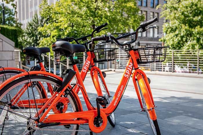 The Bikes: Compared with LimeBike, the Spin bikes are easier to use and much lighter. The safety light in the back turns on automatically once you unlock the bike. Spin bikes might just be my favorite to ride around town on. I also noticed that the Spin bike fits comfortably on the bike rack of CATS buses.