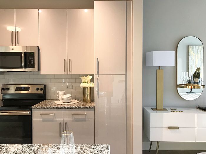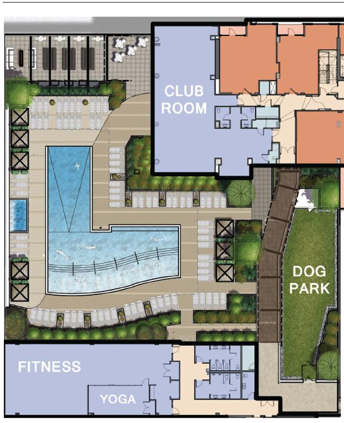 There is also a dog park, a ground level courtyard, the aforementioned transit plaza, 10’ ceilings in the units, 19th-floor sky lounge, marble stone backsplashes, quartz counters and much more.