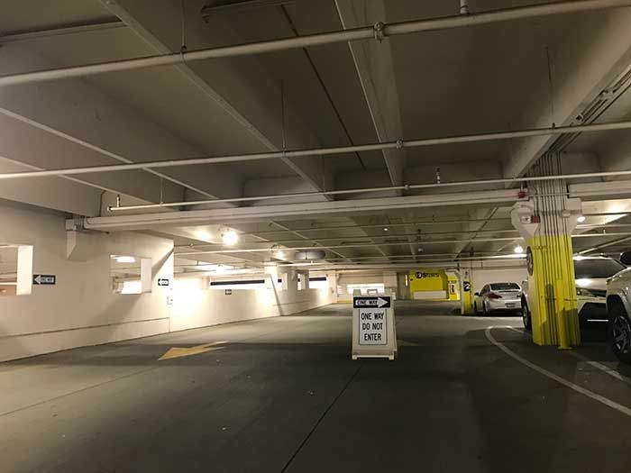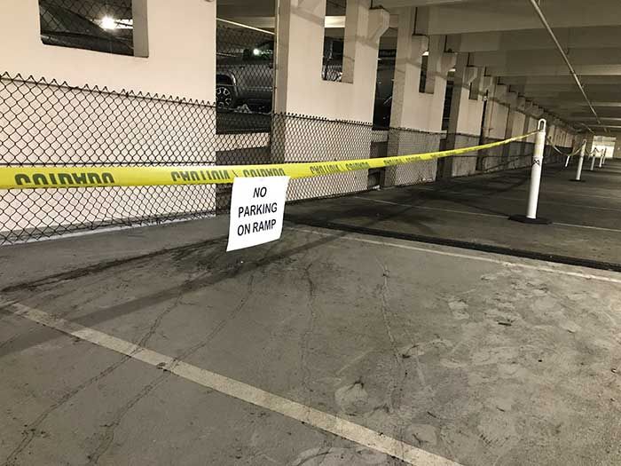 Floors 1-3 have been one-way for the past two weeks. Parking spaces on the upward ramps have also been blocked off.