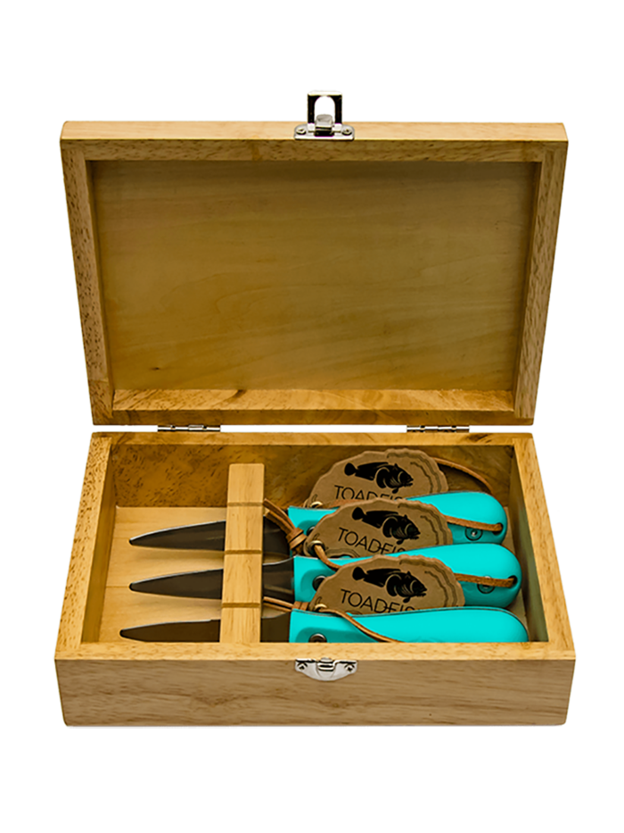 Look for the Oyster Knife Set by Toadfish Outfitters ($100) and TSG’s Harness Leather Belt in Cognac ($65).