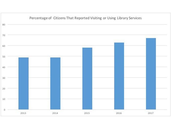67% of the county’s residents reported visiting or using the library during the same year, yet another rise.