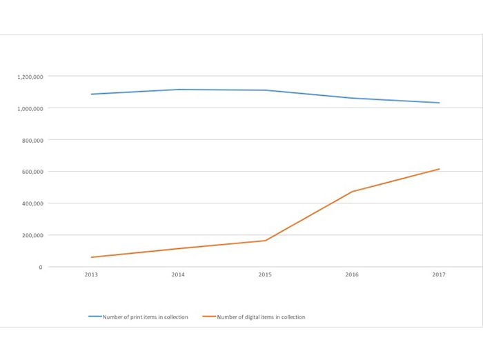 While the number of physical items in the library’s collection has dipped to just over 1 million – the number of digital items has grown more than ten fold since 2013 – it still manages to make up 75% of business.