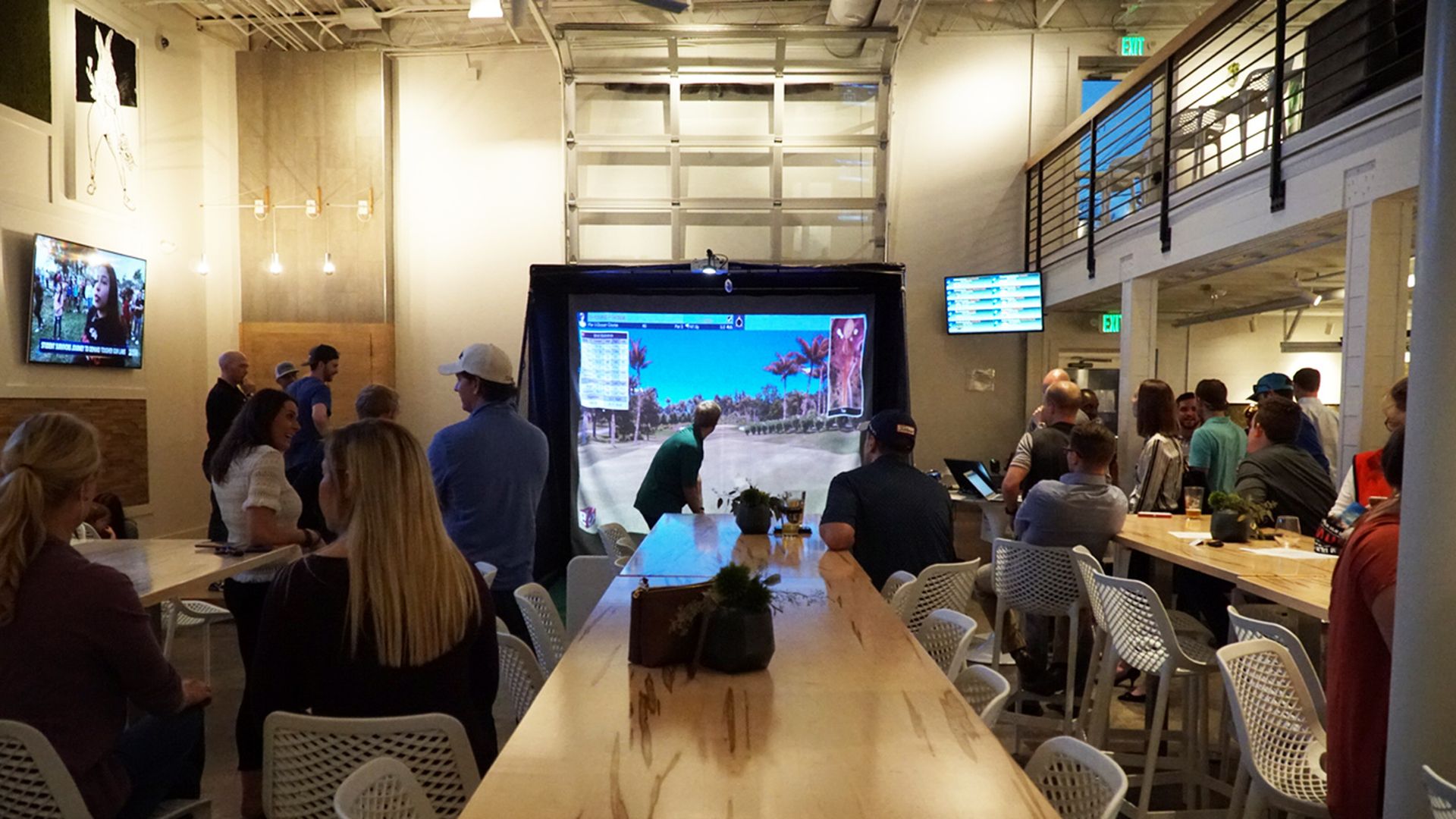 GoTeeBox uses a fancy, proprietary custom-engineered kit to reduce set-up time and make everything super turnkey. The setup includes Skytrak launch monitors to capture data and they use a high-end screen to project an HD picture.
