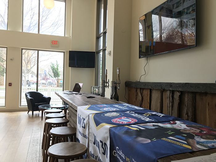 Patrons can watch games on the 75″ TV above the bar and multiple others throughout the space, or hang out at the high top tables and in standing room.