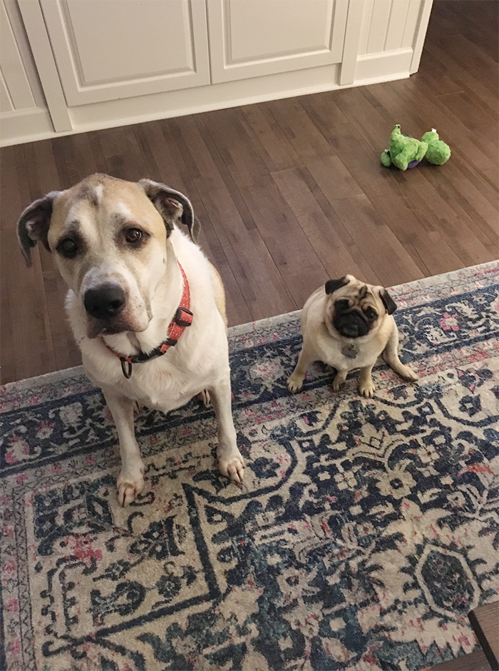 7 a.m. My alarm goes off and immediately both of my dogs jump into bed and want to cuddle. My Saint Bernard mix, Jackson, curls up by my feet while my overweight Pug, Frank, sits on my pillow and snorts in my face.