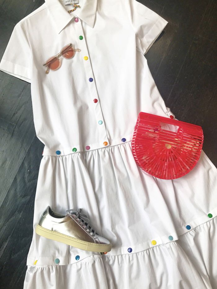 Try a colorful maxi dress with a lightweight knit or a breezy blouse with denim.