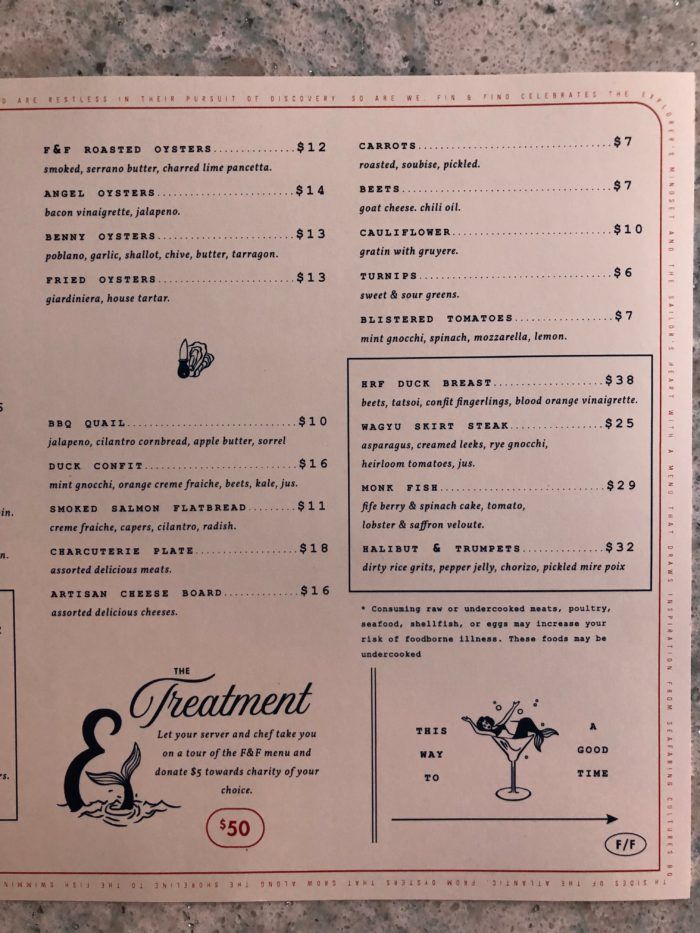 Not sure where to start? Ask for The Treatment and your server will create a personalized menu tour for you for $50 (including a $5 charitable donation to the nonprofit of your choice).