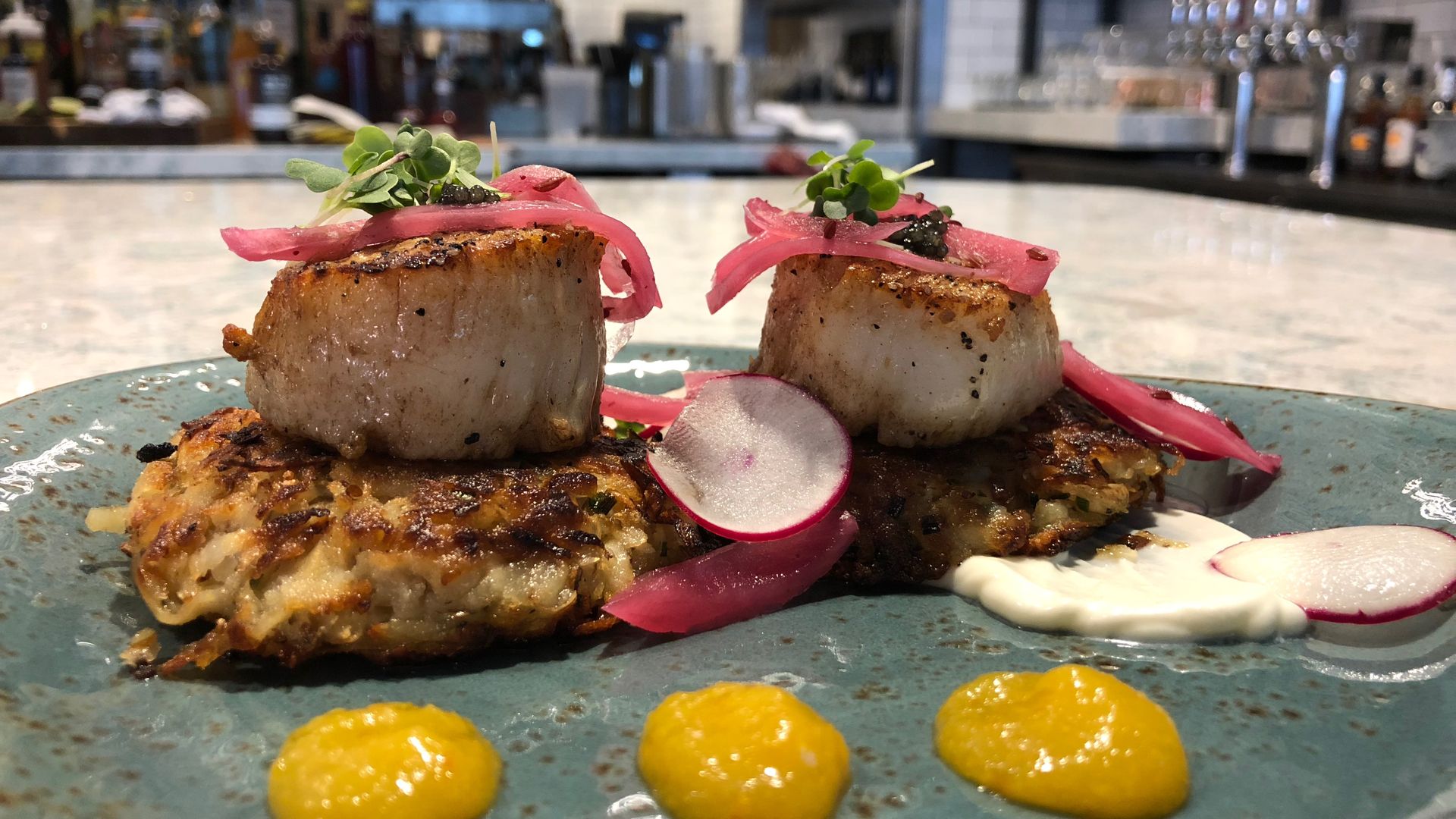 We’re talking things like scallops served over potato latkes ($15), lobster mac & cheese ($14), smoked salmon flatbread ($11), mussels ($10) and a raw bar. They’ve also got land dishes like wagyu skirt steak ($25) and duck breast ($38)