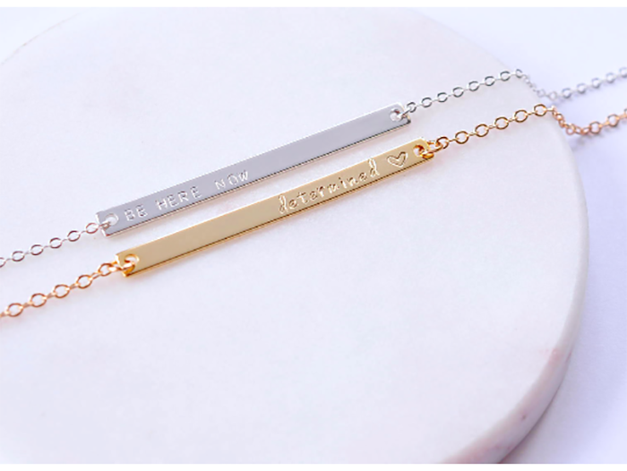 What started out as a jewelry-making hobby in 2014 has become Jennifer Falcon’s full-time passion. Check out her beautiful minimalist designs. My favorite? These personalized skinny bar necklaces for just $39!