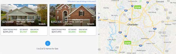As of Friday afternoon, Knock.com had only two listings on its site in the Charlotte area, though they only recently rolled out locally and it takes some time for sellers to work through the process.