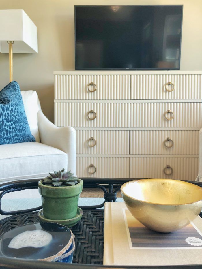 Source for inspiration: “I grew up around beautiful interiors,” says Stump. “My mom had a knack for it.” Today, Stump’s condo is filled with design-focused coffee table books, and she subscribes to Elle Decor and Traditional Home magazines. “I also follow what feels like hundreds of interior designers on social media,” she says, siting Collins Interiors and Jenkins Interiors as two favorites on Instagram.