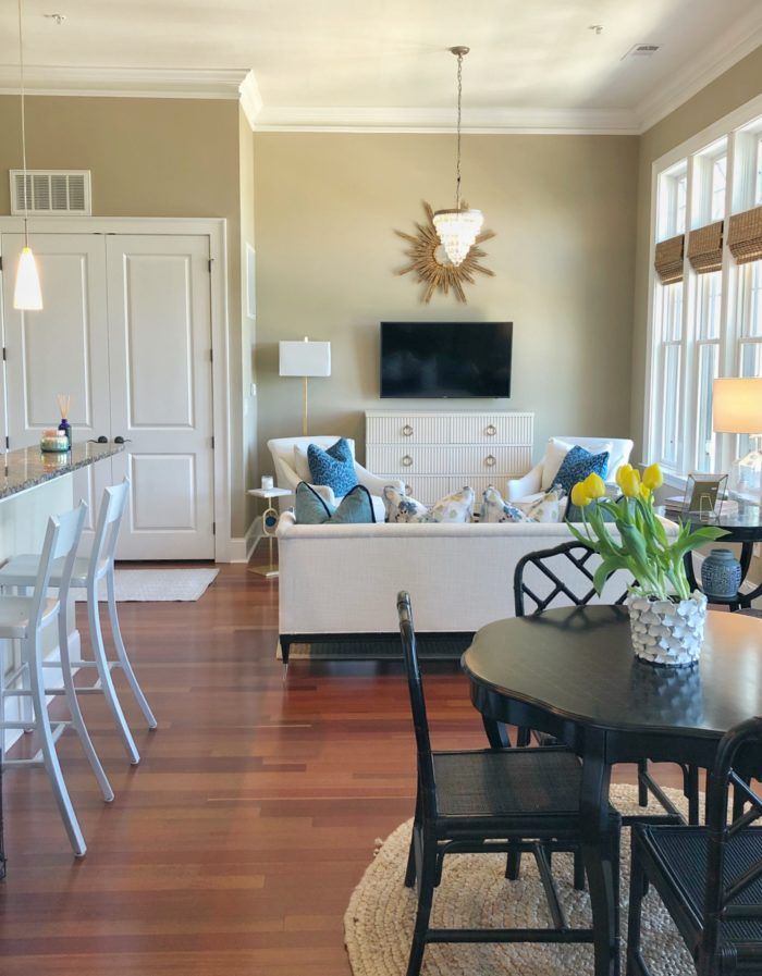 And while it was her condo’s location—in the familiar Myers Park neighborhood and across the road from Selwyn Pub—that first caught her attention, it was its bright interior and 12-foot ceilings that ultimately won her over.
