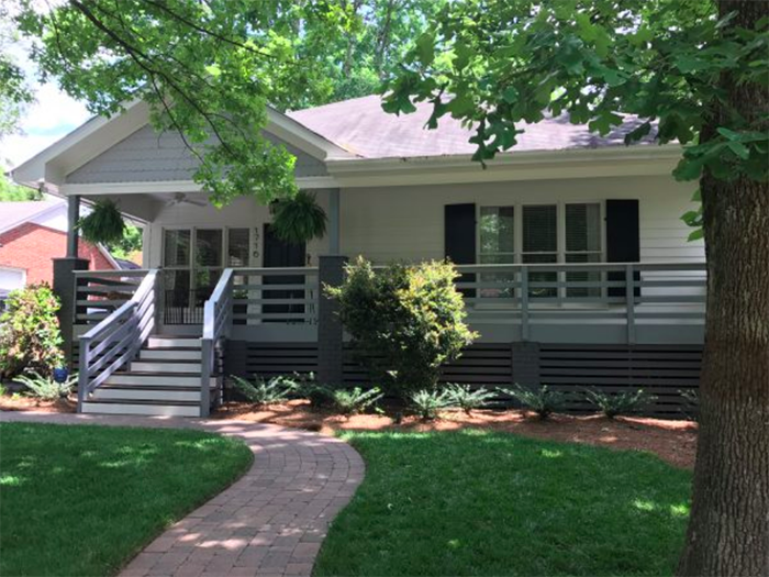 Per the description, “Inspired by the gracious and charming porches of her neighbors—and some fantastic porch parties, she rebuilt the sunroom and doubled the size of the porch—which now serves as the primary spot to relax and watch the world stroll by.”