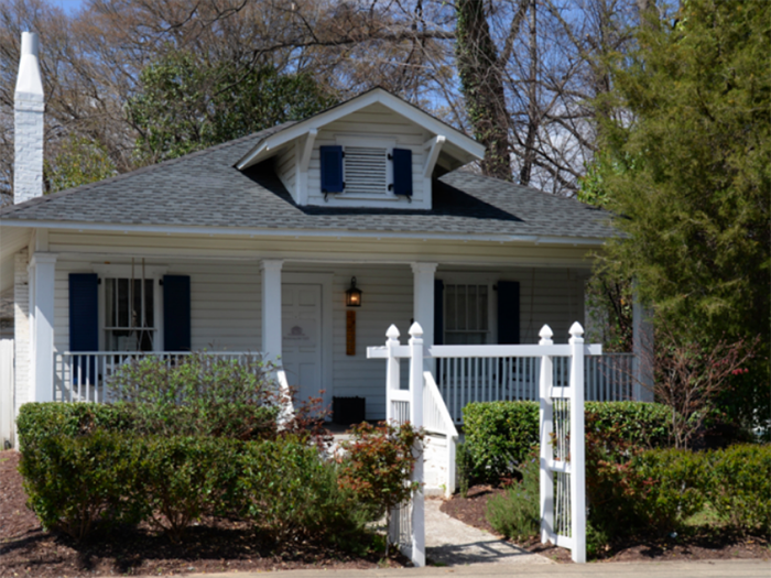 Per the description, “This teeny house has been lovingly named Bungalow 1325 —and though she be but little…she is lovely. Most of the art on the walls is by Cass herself, with the notable exception of the painting above the mantel, purchased from (the now closed) Plaza Muse art gallery the day she quit her corporate job to pursue her dream of owning her own photography business in Plaza Midwood.”