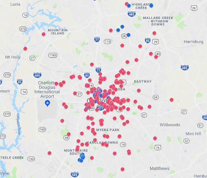 It is not available in single-family neighborhoods including Barclay Downs, Chantilly, Cotswold, Seversville, Ashley Park, Ballantyne, Mountain Island Lake, Sunset Drive, Sedgefield, Myers Park or Dilworth.