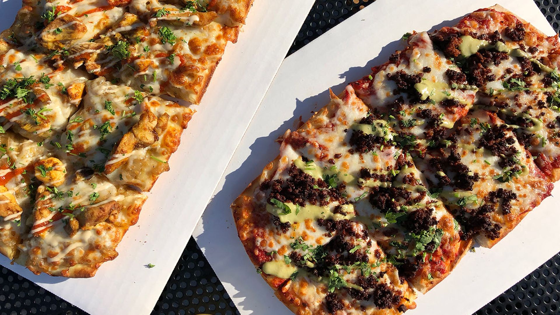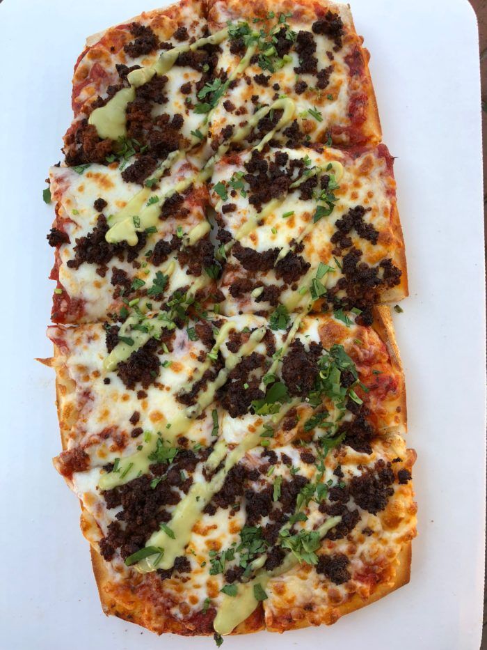 All pizzas are $13. The most popular toppings are Mexican (chorizo, queso fresco, cilantro, crema, tomatillo and guajillo sauce) and Lebanese (chicken shawarma, caramelized onions, tahini, harissa and parsley).