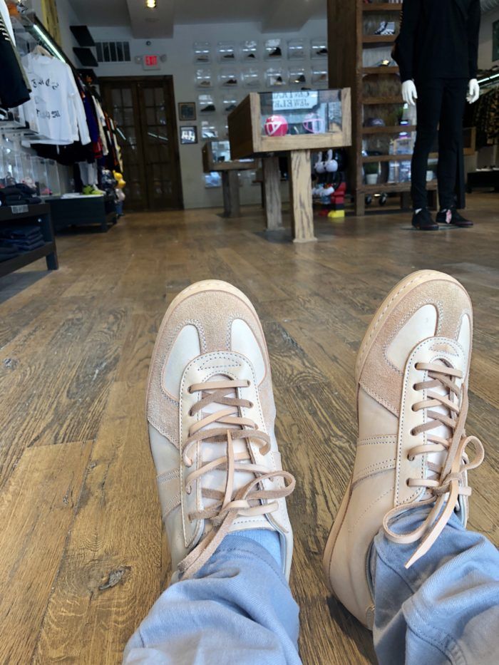 Hender Scheme is a current favorite of Justin Bieber and Diddy. Their Air Force One take costs $1280, and their Timberland model costs a cool $1400. I tried on their Margiela remake, which’ll set you back $950.
