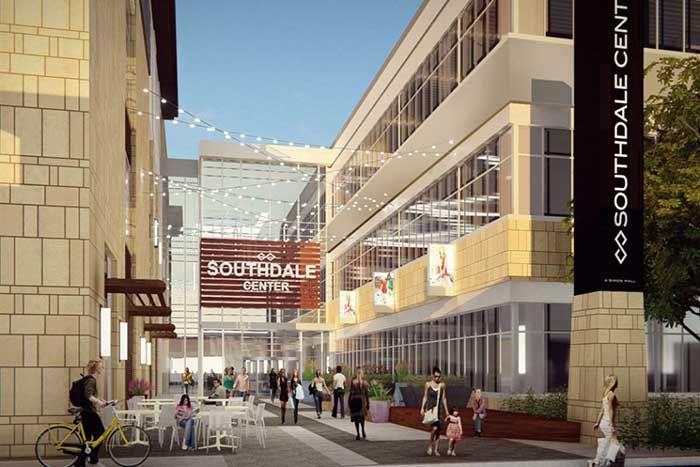 At Southdale Center in Edina, Minnesota, a former JC Penny is being turned into a massive atrium with a Life Time Athletic fitness center, a coworking space and an indoor sports complex. There will also be a 146-room Homewood Suites hotel and a Shake Shack (only the second in the state).