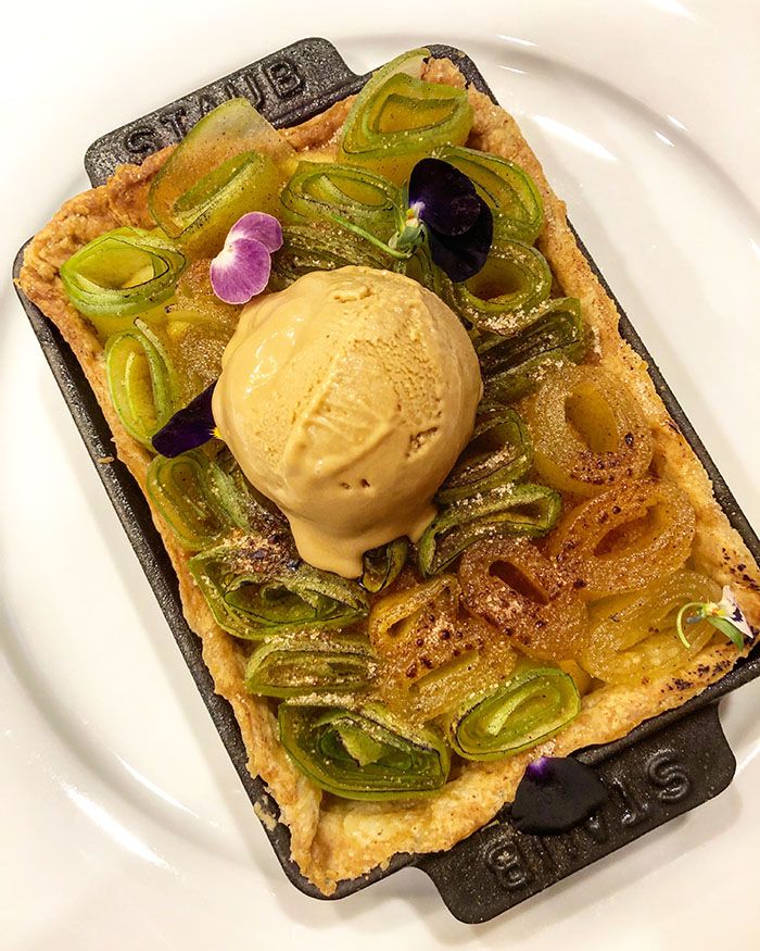 Apple pie — made with coiled apple ribbons and served a la mode in a mini cast iron dish; a highlight of our meal