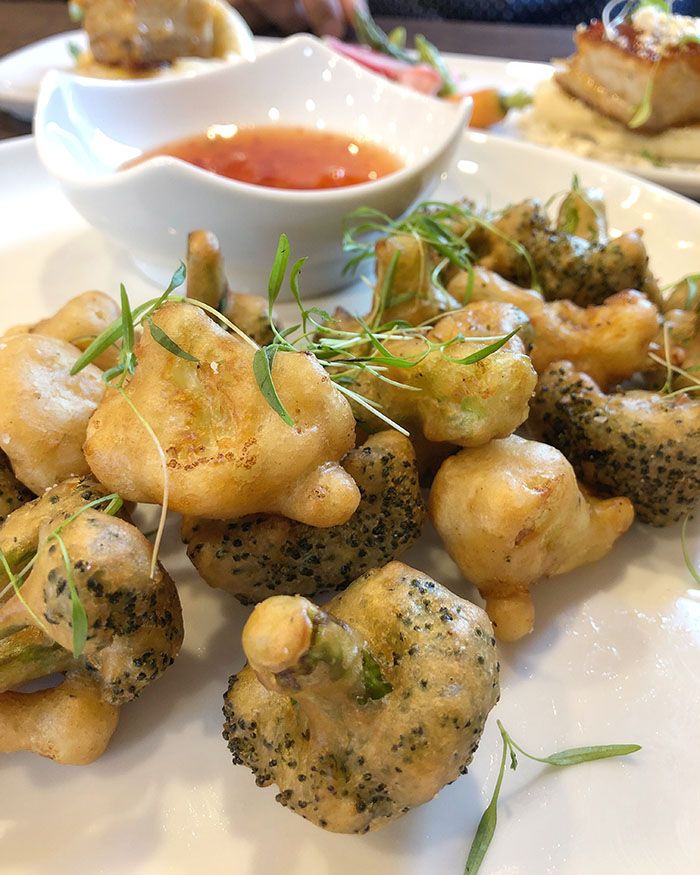 The farm-driven menu features a mix of inventive shareable small plates like foie gras funnel cake along with full-size classic entrees, including a family-style whole roasted chicken.