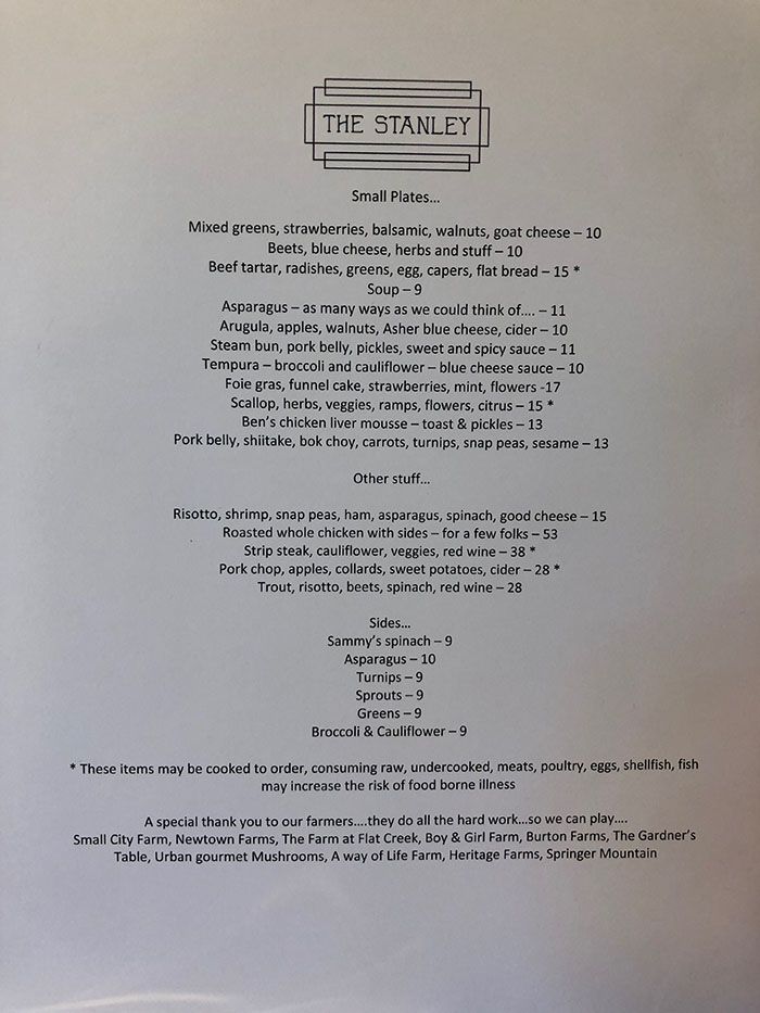 Here’s The Stanley’s full menu: