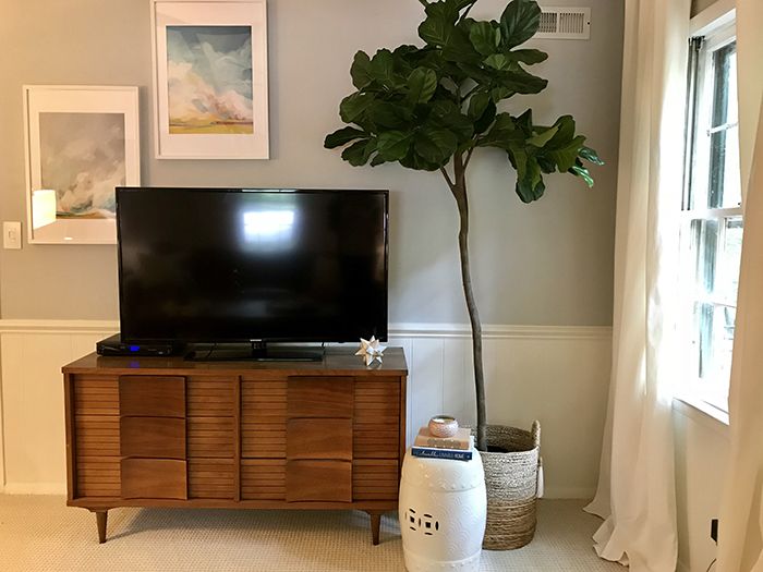 Favorite finds: Immediately, she points to an old dresser that doubles as a TV stand.