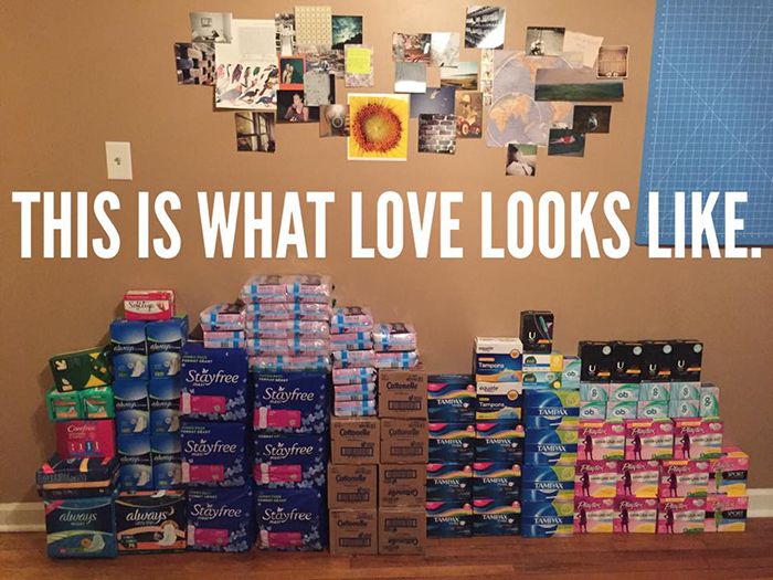 Unsure of how else to help, she decided to take pads to a local shelter and shared her idea on Facebook inviting friends to send a box with her.