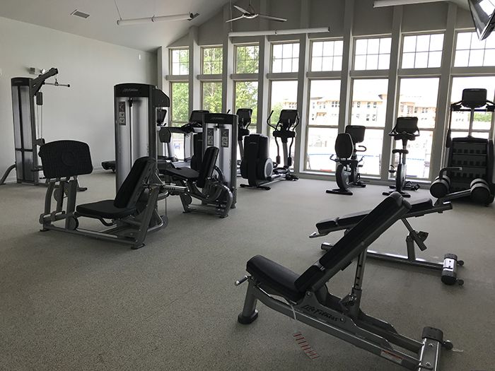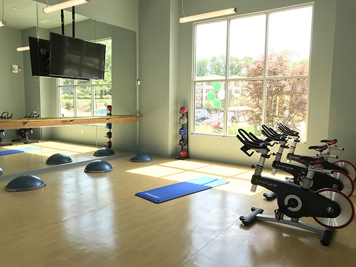 - Fitness. The 24-hour fitness center includes a spinning studio, yoga room and on-demand fitness classes. Looking to get outside? Hit the jogging trail, complete with outdoor exercise stations, tennis court or putting green.