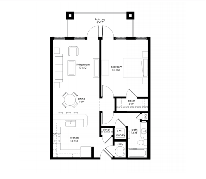 - 1-bedroom price range: $1,256-$1,386 (792-887 sq. ft.)