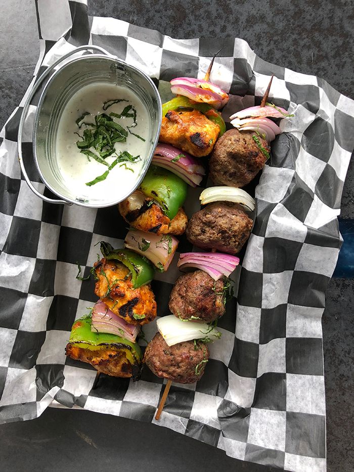 The menu features a food truck-inspired lineup of handheld items like skewers, sliders, tacos and grilled cheese along with bar favorites like wings, nachos and loaded fries.