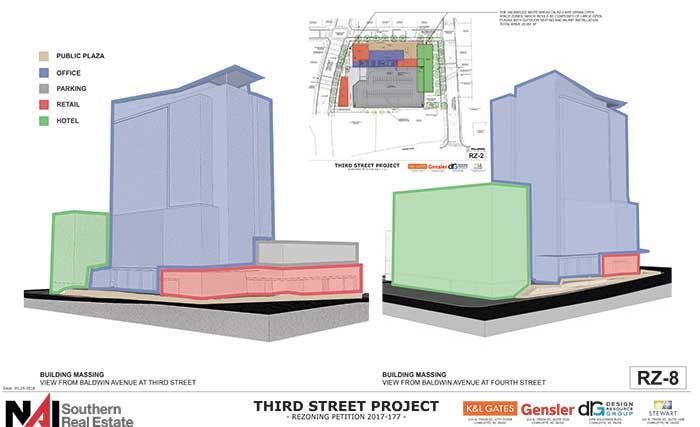 The Charlotte City Council is slated to decide Monday on a rezoning plan that would allow a 20-story office tower with ground-level retail and a 240-room hotel in Midtown.