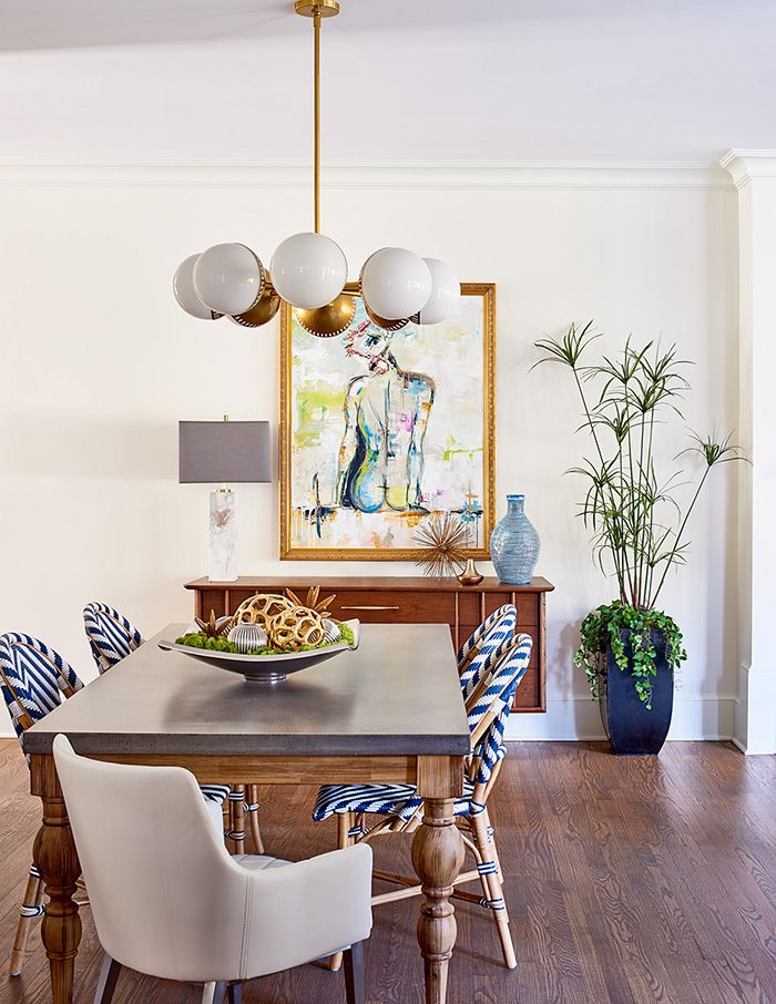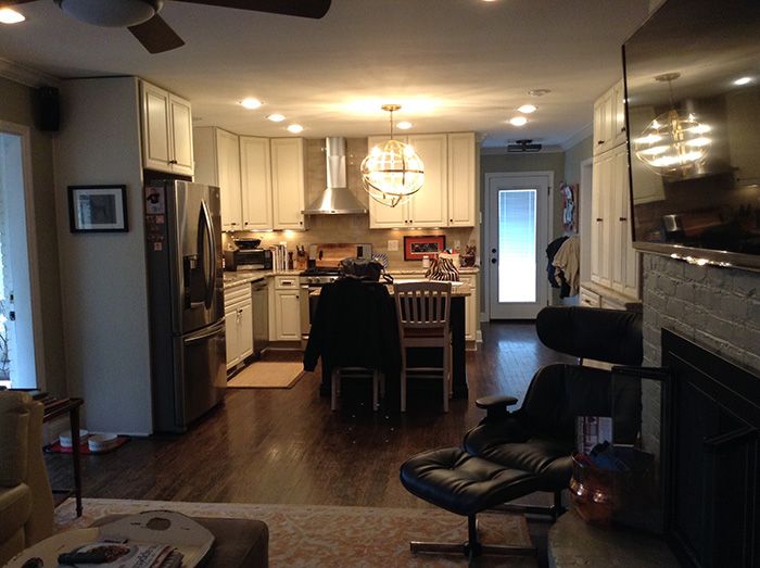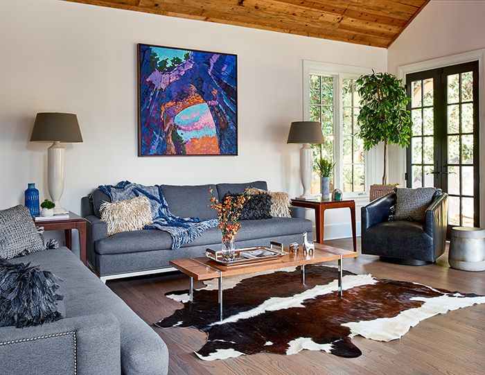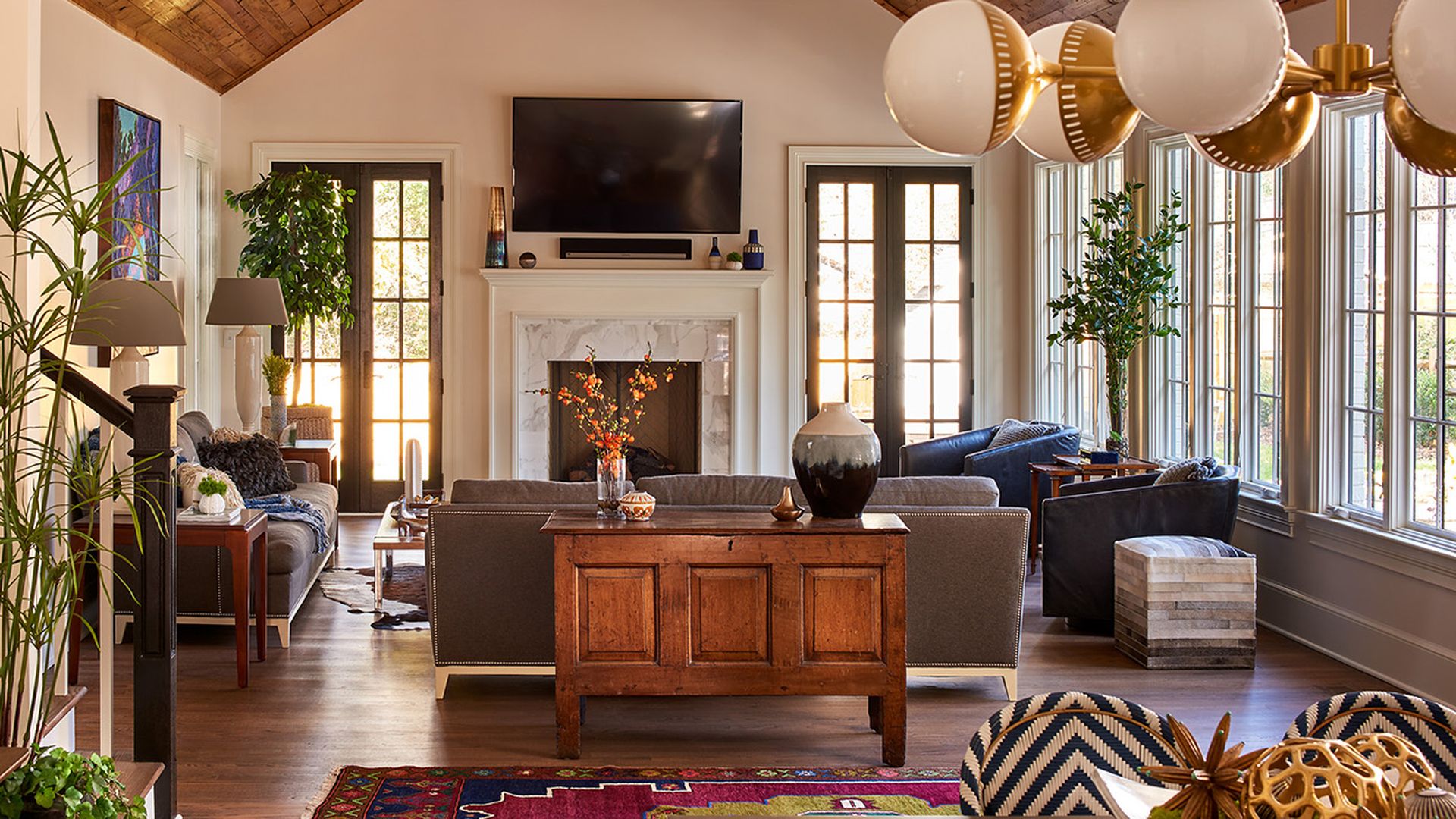 “Worth noting is the wood on the ceiling in the living room, kitchen vault and screen porch ceiling. It is reclaimed wood that came from a Broyhill furniture factory built in the 1950s. Originally the wood was the sub floor for the textile trimming area which was suspended above the main level. The client’s father bought the factory building to use as a manufacturing facility for commercial waste equipment. In the renovation, he was able to salvage the wood, which they used in their home.” – Clark & Clark Interiors