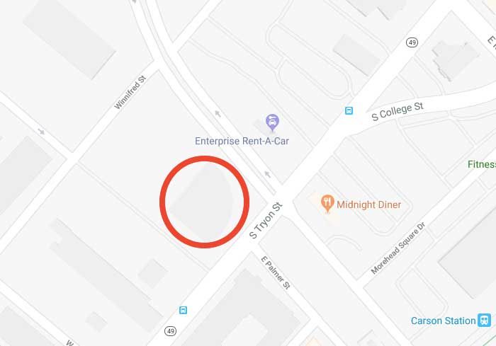 The Spectrum Companies is petitioning the city for a rezoning that would allow two mid-rise buildings at South Tryon and Carson. This is where the crescent-shaped Cardinal Innovations Healthcare (former) headquarters building stands, and diagonal from the Midnight Diner.