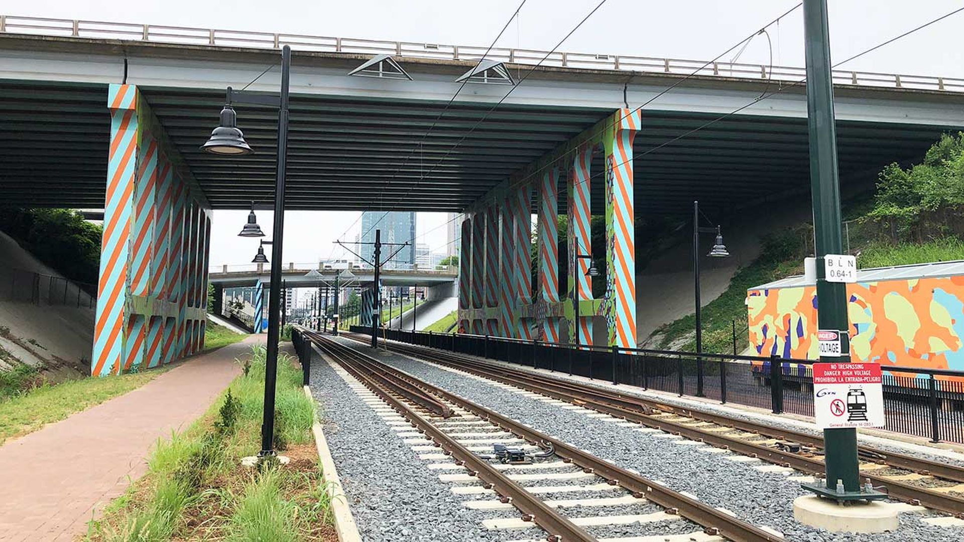 After crossing through a colorfully painted underpass, the Rail Trail ends abruptly at 12th Street on the north side of Uptown.