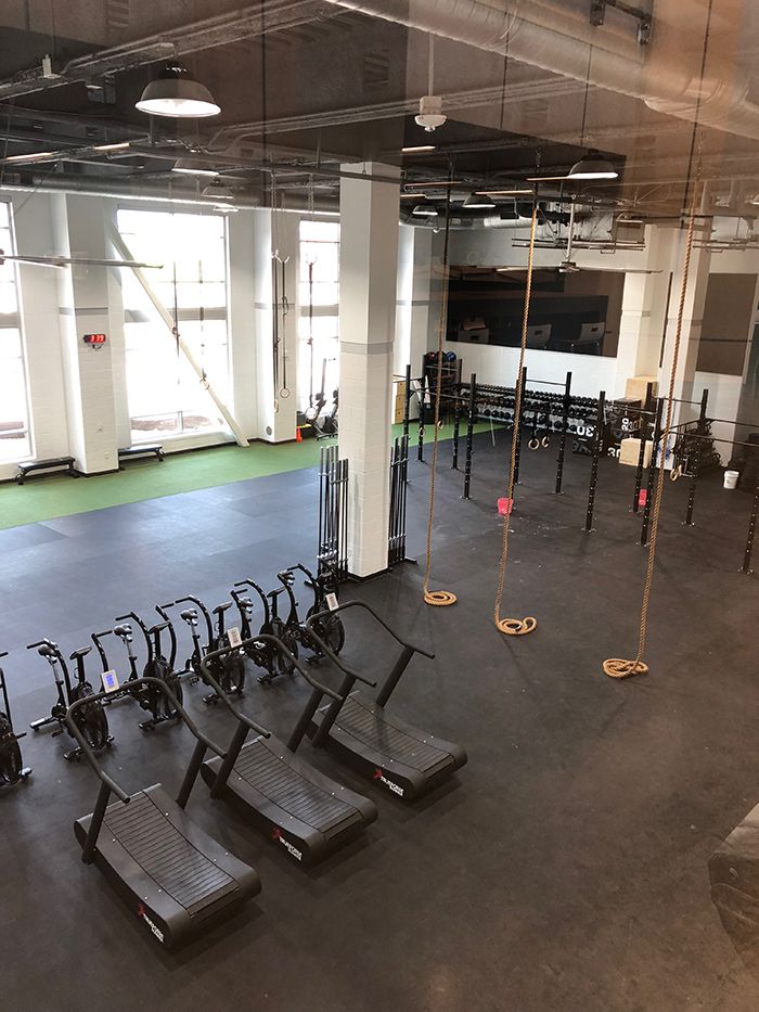 The brand new CrossFit gym, yoga studio and barre studio are on the ground level.