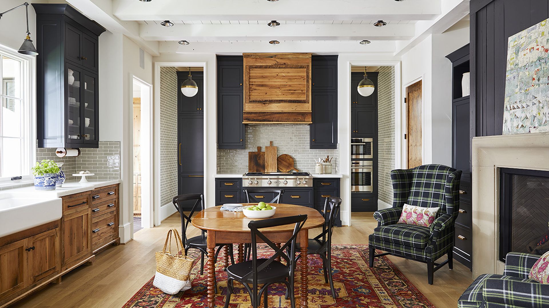 I chose to place a table at the kitchen’s center in lieu of an island because it brought back the same warmth my husband and I felt when our families gathered around our grandma’s kitchen table for Sunday dinner many years ago. I’ve designed many big islands – and they’re wonderful, but with this home, I wanted an antique table for a more personal, intimate feel. And combining a hearth room within the kitchen entices you to linger. Our family spends most of our time together in our kitchen so it was important to me to have a space that encouraged our kids to sit and talk a little longer. You can put your feet up and sit in front of the fireplace while the kids do their homework at the table and the chef (that’s me usually!) cooks. It’s a space designed for family time.” -Mary Ludemann, New Old