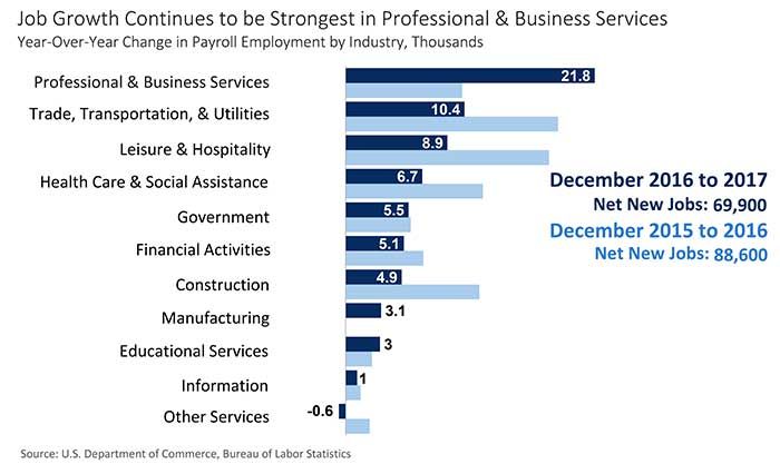 Meanwhile, North Carolina’s metro areas have become national hotbeds of professional services-related jobs. There’s a lot more demand for entry-level white collar type work.