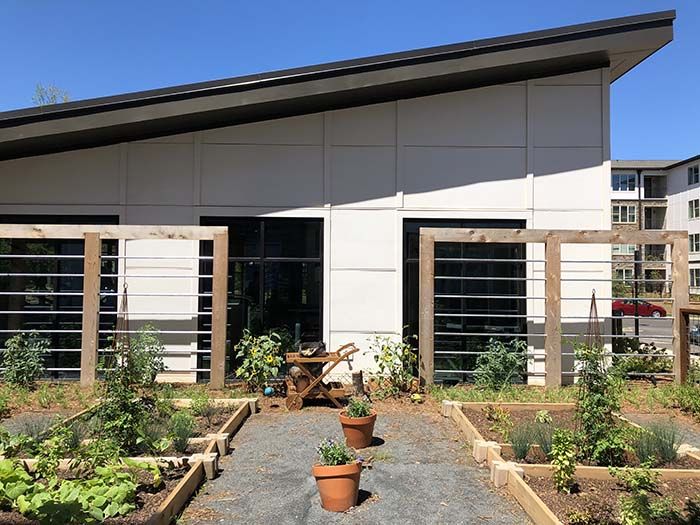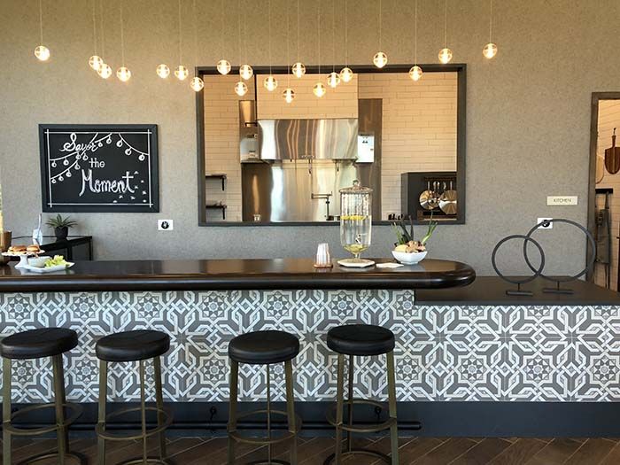The community looks to celebrate food, family and friends, and this is clear throughout the grounds, which feature gardens with edible plants and fruits, a picnic park, a tree orchard, outdoor kitchen, community Big Green Egg and restaurant-themed clubroom.