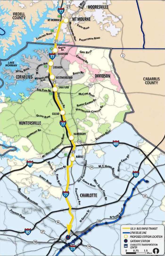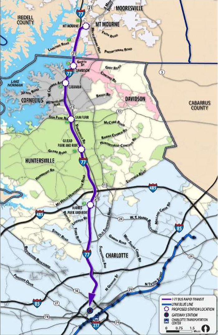 The third option is to build a new light rail line roughly along the I-77 corridor. This would be a massively expensive undertaking, including building a bridge over part of Lake Norman. It would also take about an hour to get to Uptown from Mooresville.