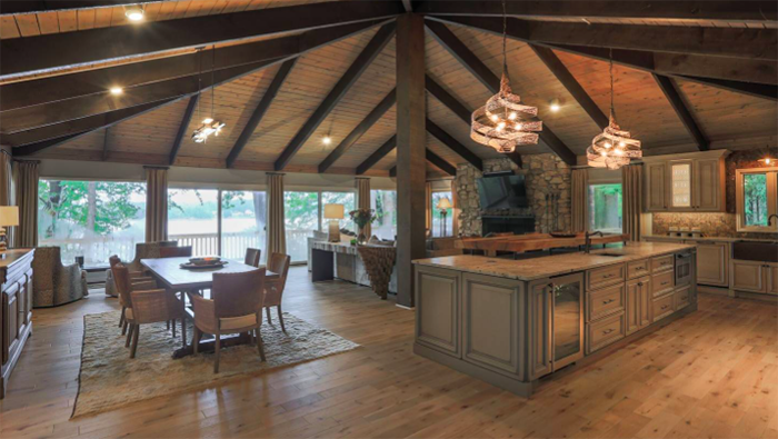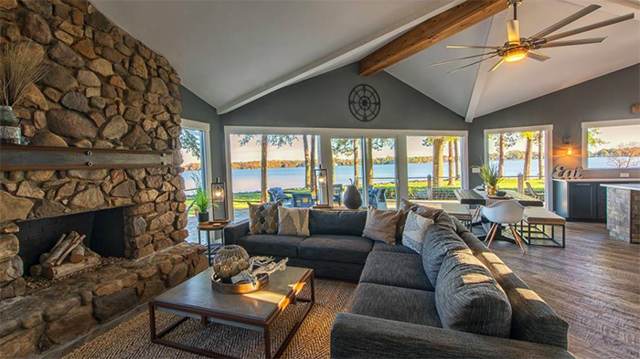 This gorgeous, newly built home on the lake is capable of fitting 10 guests, making it a perfect location for a mini getaway. One of the best features about this home is the covered dock space that serves as a living area right on the water’s edge. This home is as spacious as it is beautiful.