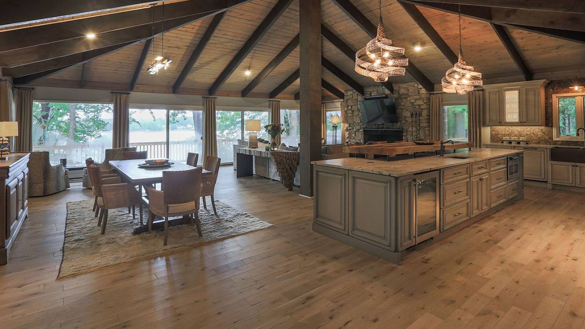 This luxurious vacation home offers three floors of the finest, most pristine living experiences on the lake. Along with the large amount of bedrooms offered, this home is recognized for the hot tub, fire place, and the two 1100-square-foot outdoor living areas.