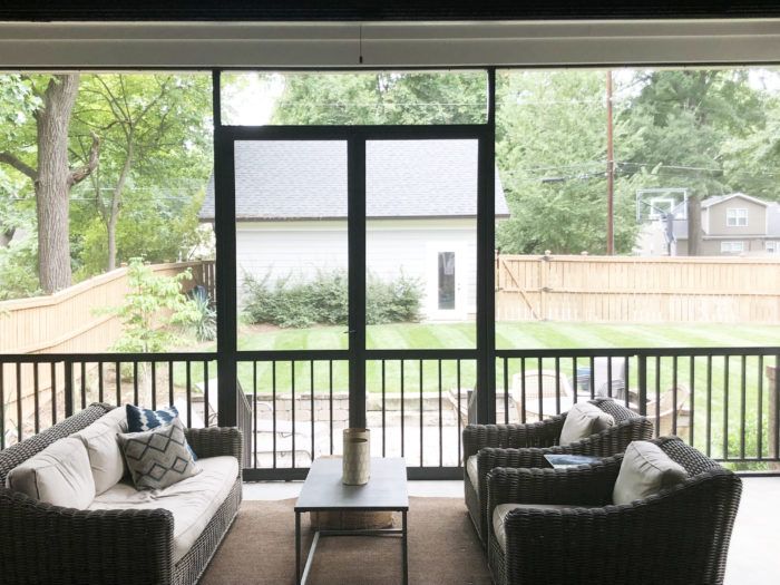 Open door policy: The home’s living space feels especially large when the couple opens the 15-foot glass telescoping door that disappears into a wall and opens the room to the screened-in porch. “We love being outside and it opens it up so that it feels that way,” says Orrell.