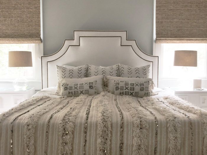 Be Our Guest: When it came to the home’s guest room, Orrell wanted to design on a budget. “With everything I think I spent less than $2,000,” she says. The bed frame is a from Wayfair.com, the nightstands are from West Elm ($299), the lamps and bench are from Target, and the mirrors above the bed are from Urban Outfitters.