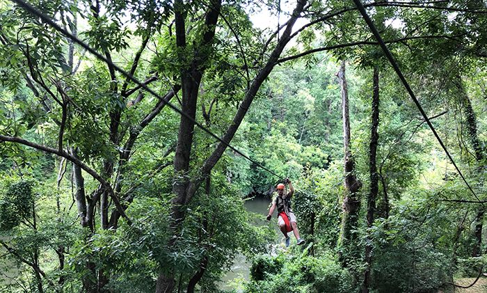 Full Zipline Tour – ($89, 3.5 hours) – You’ll ascend a 70-foot tower to kick off your tour of 9 ziplines, including a 900-foot line. This is the most popular option.
