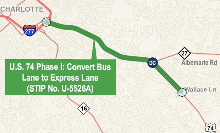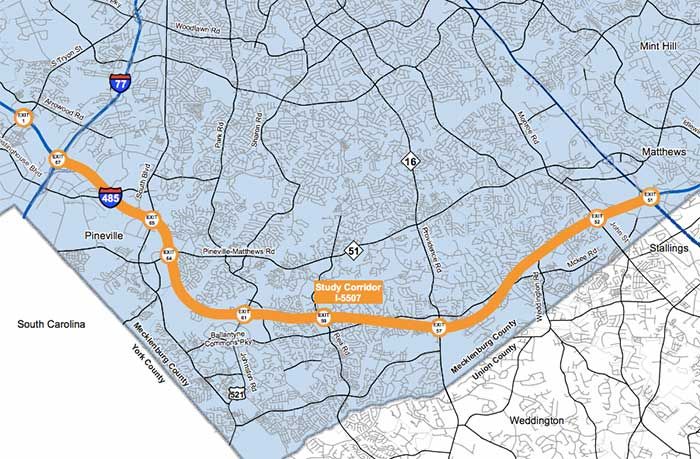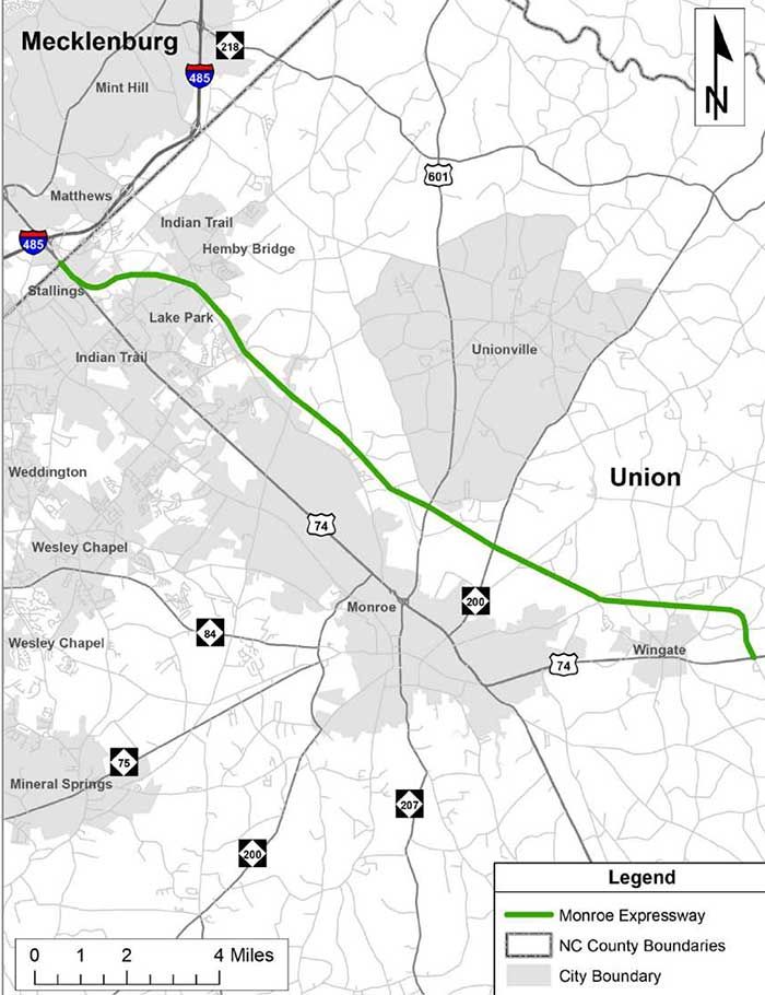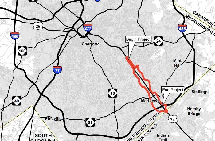 Length: 20 miles roughly parallel to U.S. 74, from I-485 to Wingate.