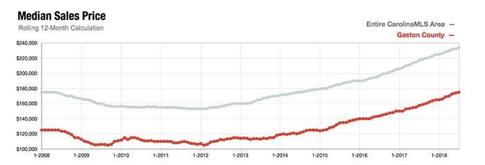 Now standing at $178,700, the median sales price for homes in Gaston County is up more than 11 percent year over year, according to data from the Charlotte Regional Realtor Association. That’s more than twice the rate of increase of Mecklenburg County and far outstripping the region as a whole.