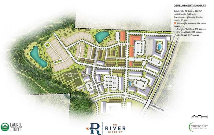 Laurel Street Residential will develop the affordable housing community at the River District, using the donated land valued at $2 million.