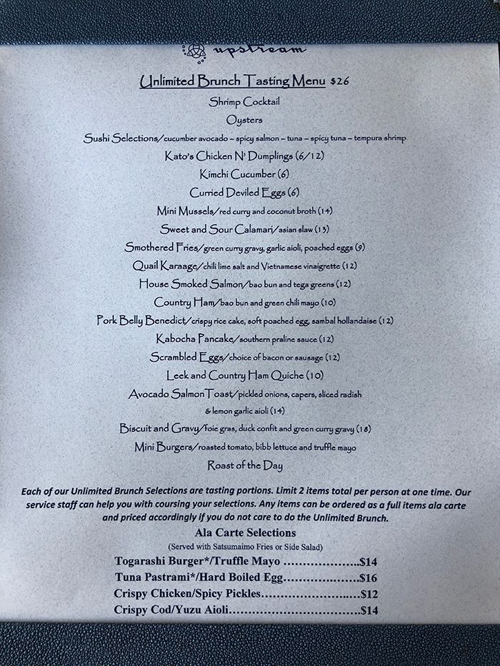 (1) Upstream Brunch is available Saturdays and Sundays.