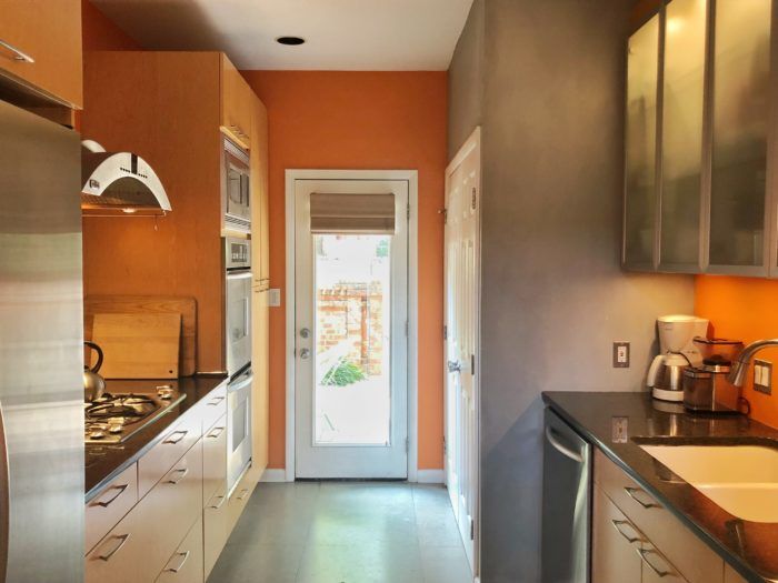 Contemporary Color: “I’m definitely not afraid of color,” says Nessbach. “I love the larger areas to be very light and airy, but when it comes to smaller spaces like the powder room and bedrooms, I like to use color.” Nessbach painted the kitchen orange, a color she says evokes hunger and she painted her bedroom a dark grey to encourage rest.