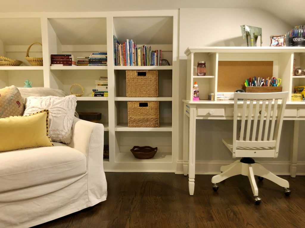 Hidden Treasure: When the Smiths were renovating their attic, the contractor discovered an old trunk hidden behind beams in the space. “My daughter really believed there was going to be money in there,” Laura says with a laugh. As it turned out, there were only bundles of old yarn and knitting needles. But Laura now has the vintage trunk, which reads Simpsonville, SC on its side, in her home office.
